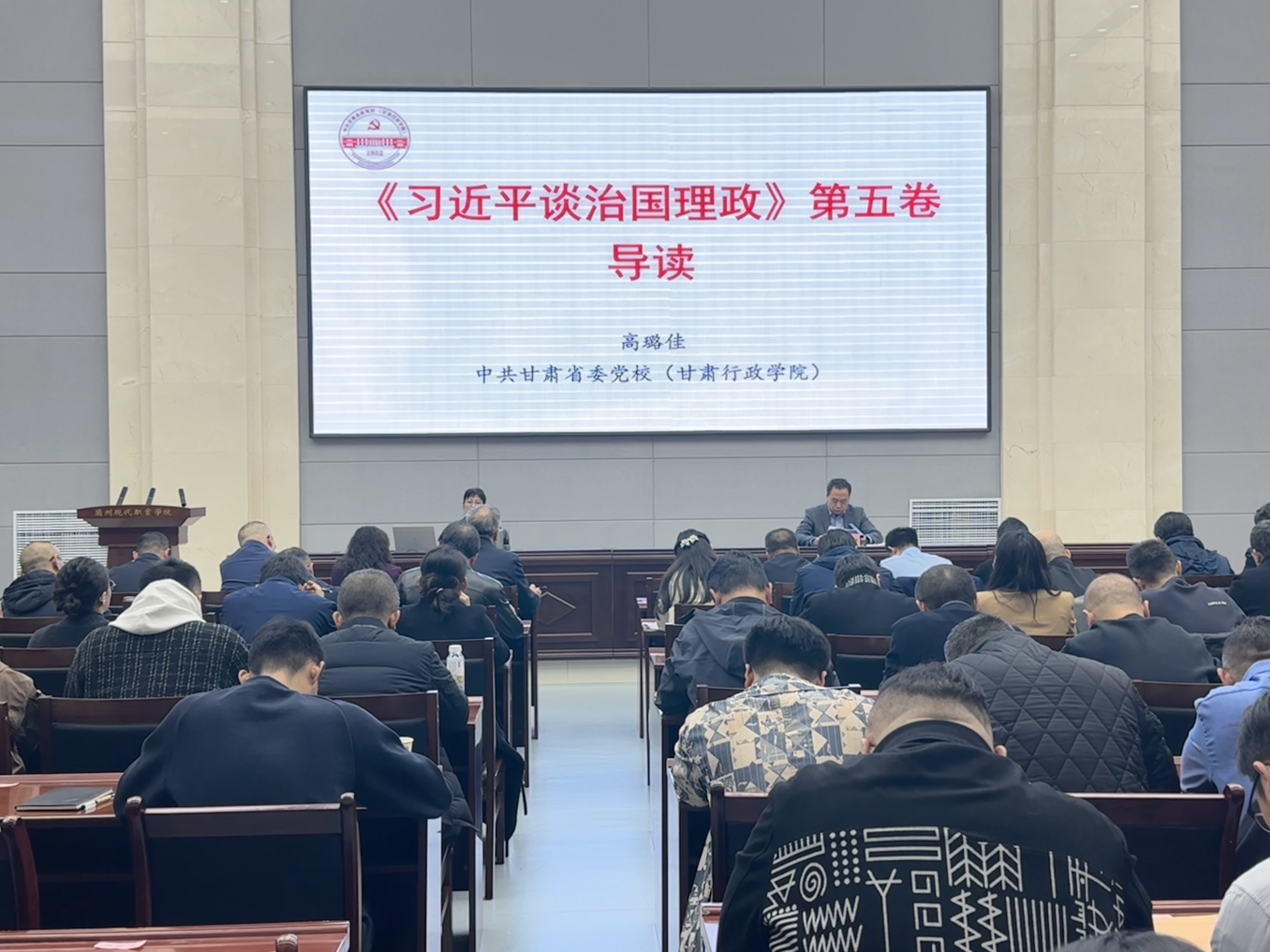 活动邀请到省委讲师团成员、中共甘肃省委党校(甘肃行政学院)校(院)委委员、教务处处长高璐佳教授作专题辅导。我院党委理论学习中心组成员、全院科级以上干部、部分辅导员及班主任共180人聆听报告。